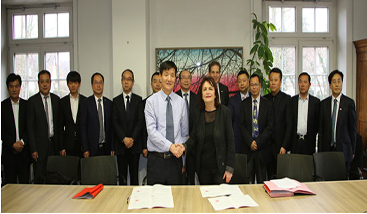 雙方簽署合作交流框架協(xié)議。握手者為費(fèi)舍爾副主席和劉宏陽副縣長